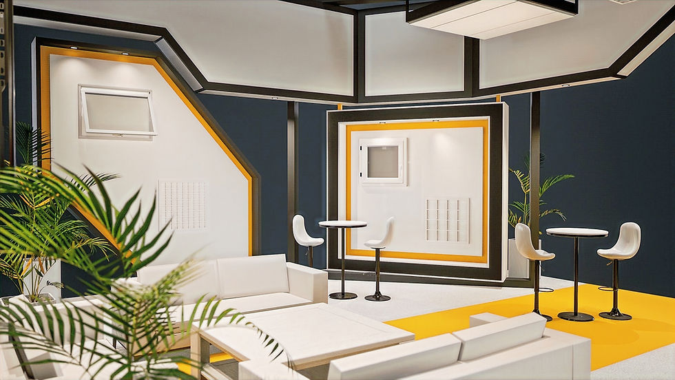 Conceptualize a modern and eye-catching booth design that reflects GTI's brand identity and showcases their product range effectively.